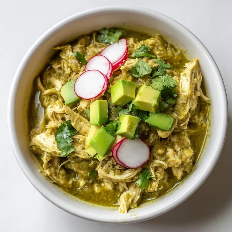 Save to Pinterest The smell of peppers and tomatillos under the broiler always stops me in my tracks. I learned this from my grandmother who would char vegetables on her comal until the kitchen filled with that intoxicating roasted aroma. This chicken chili verde became my winter staple the year I discovered how deeply flavorful a green sauce could be when you take the time to char everything first.