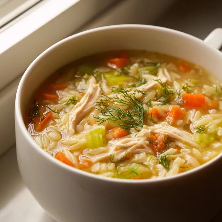 Save to Pinterest My neighbor showed up one rainy Tuesday with a container of this soup, still warm from her stove. She didn't say much, just handed it over with a small smile because she knew I'd been stuck inside with a cold. That first spoonful, bright with lemon and flecked with dill, tasted like someone actually cared. I've been making it ever since, tweaking her recipe until it became my own weeknight rescue.