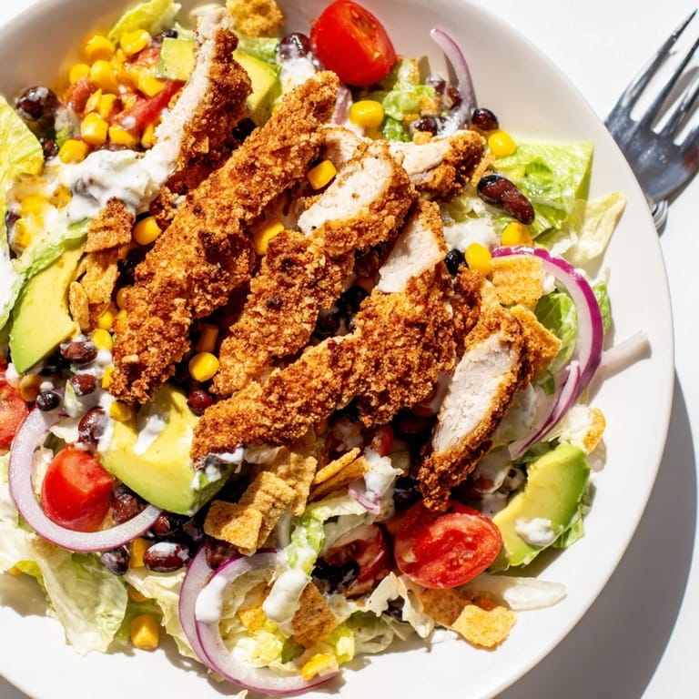 I brought this to a potluck once, and my friend who swore she hated salads went back for seconds. She admitted it was the crispy chicken that won her over, but I watched her load up on the corn and black beans too. The salsa ranch dressing disappeared so fast I had to scribble the recipe on a napkin for three different people. That was the moment I realized this dish had crossover appeal. It worked for salad lovers and salad skeptics alike.