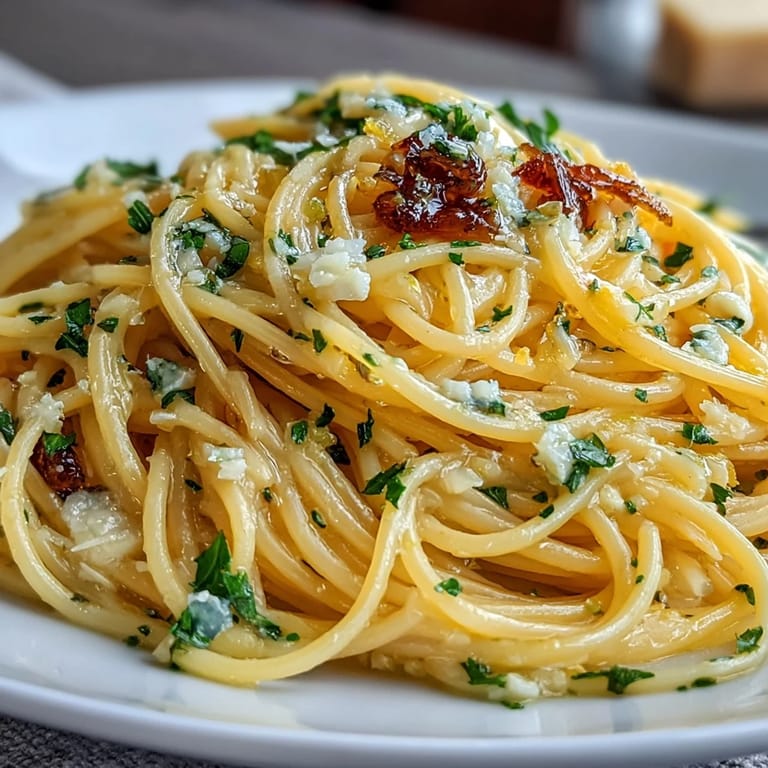 I whipped this up for a friend who stopped by unannounced, anxious from a rough commute. As we chatted, the garlic softened and filled the air, and the lemon juice sparked laughter as it splashed onto my shirt. Serving the pasta, I watched the tension melt away—sometimes it's not just food, it's comfort handed across the table.