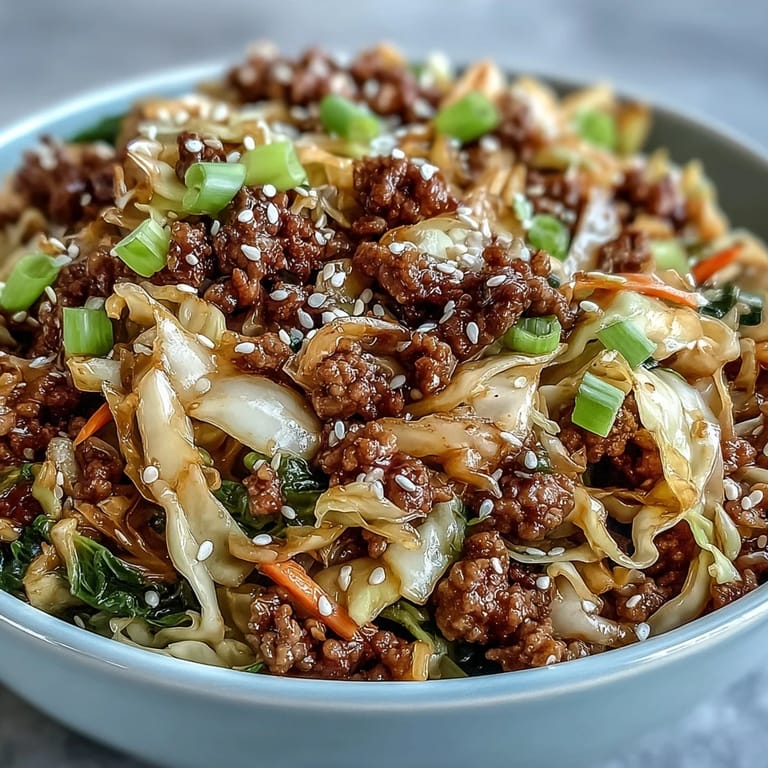 Save to Pinterest My skillet was still hot from dinner when I tossed in the ground pork, watching it sizzle and break apart into golden crumbles. The smell of garlic and ginger hit me all at once, sharp and warm, filling the kitchen faster than I expected. I had been craving egg rolls all week but didn't want the hassle of wrapping and frying. So I dumped everything into one pan instead, and honestly, it tasted better than I remembered the original ever being.