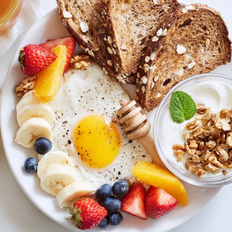 Save to Pinterest A vibrant, energizing breakfast platter featuring fresh fruit, artisanal breads, eggs, and a touch of sweetness—perfect for starting your day with color and flavor.