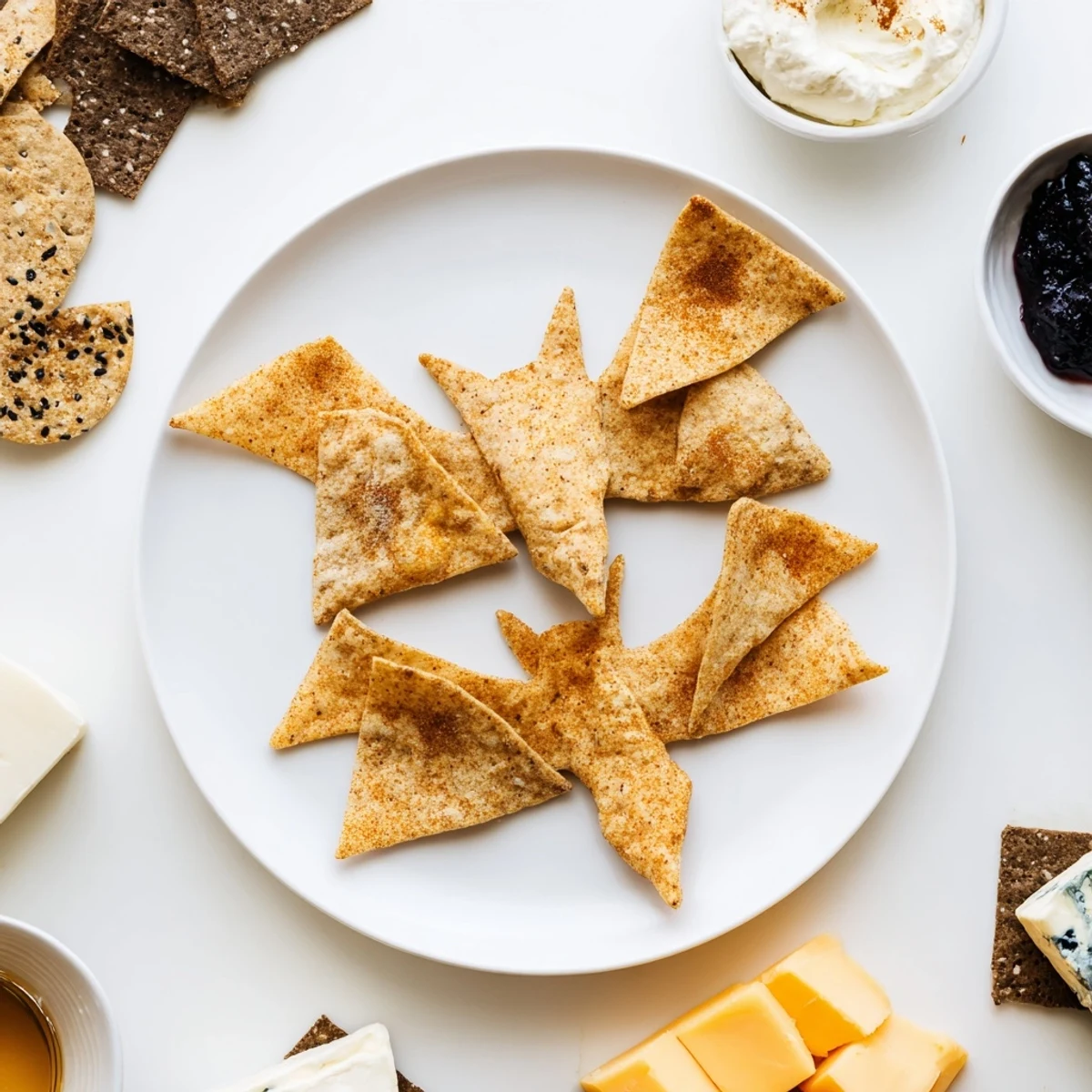 Brush both sides of the tortilla shapes with olive oil, sprinkle with smoked paprika and sea salt, then bake at 180°C (350°F) for 8–10 minutes until crisp and golden.