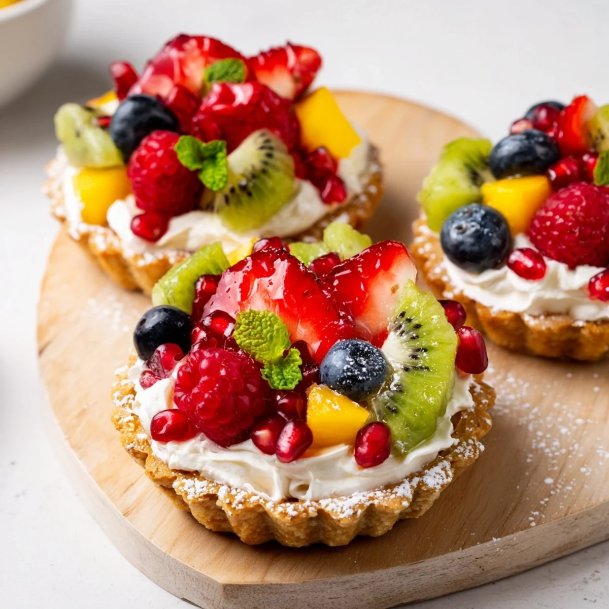 For a gluten-free version, substitute with gluten-free tartlet shells. Try mascarpone or ricotta cheese instead of cream cheese for a different flavor and texture. Feel free to exchange or add fruits you prefer while maintaining the colorful and fresh appeal of the tart board.