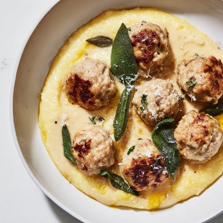 Save to Pinterest Juicy turkey meatballs are simmered in a creamy, aromatic pumpkin sage sauce capturing the essence of fall. Serve over pasta, mashed potatoes, or polenta for the ultimate comfort meal.